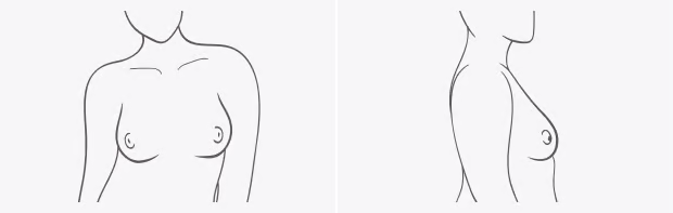 The tissue for this shape is dense and close-set to the body. If you're Low Profile, your breasts likely have less fullness. While it can vary, typically, your nipples will point forward.